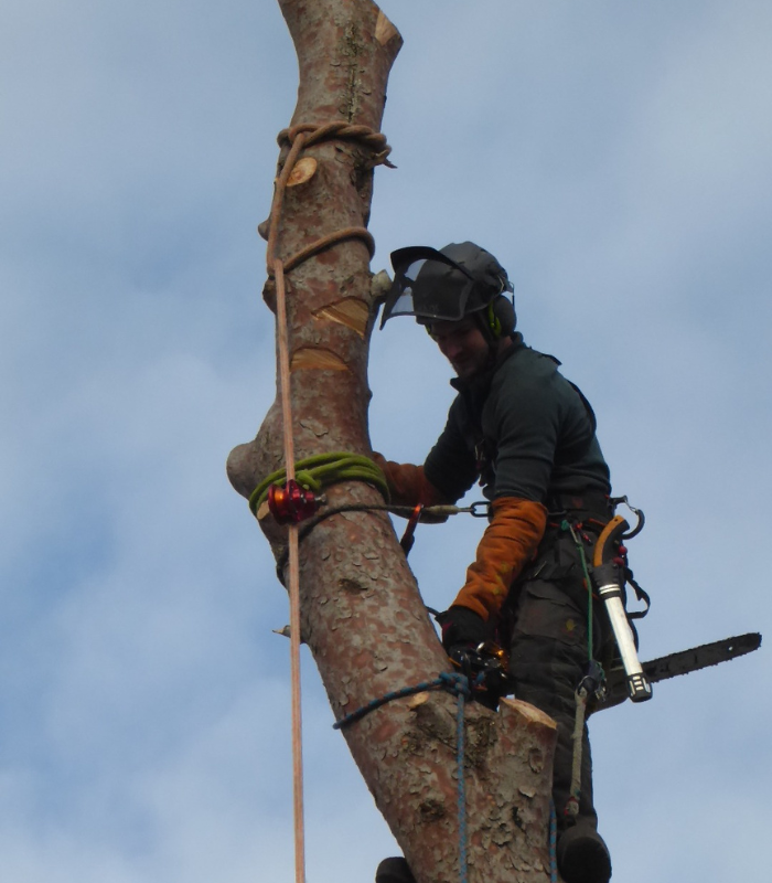 Abattage : Nous procédons à l’abattage selon la technique définie, avec une communication constante entre le grimpeur et l’équipe au sol.
